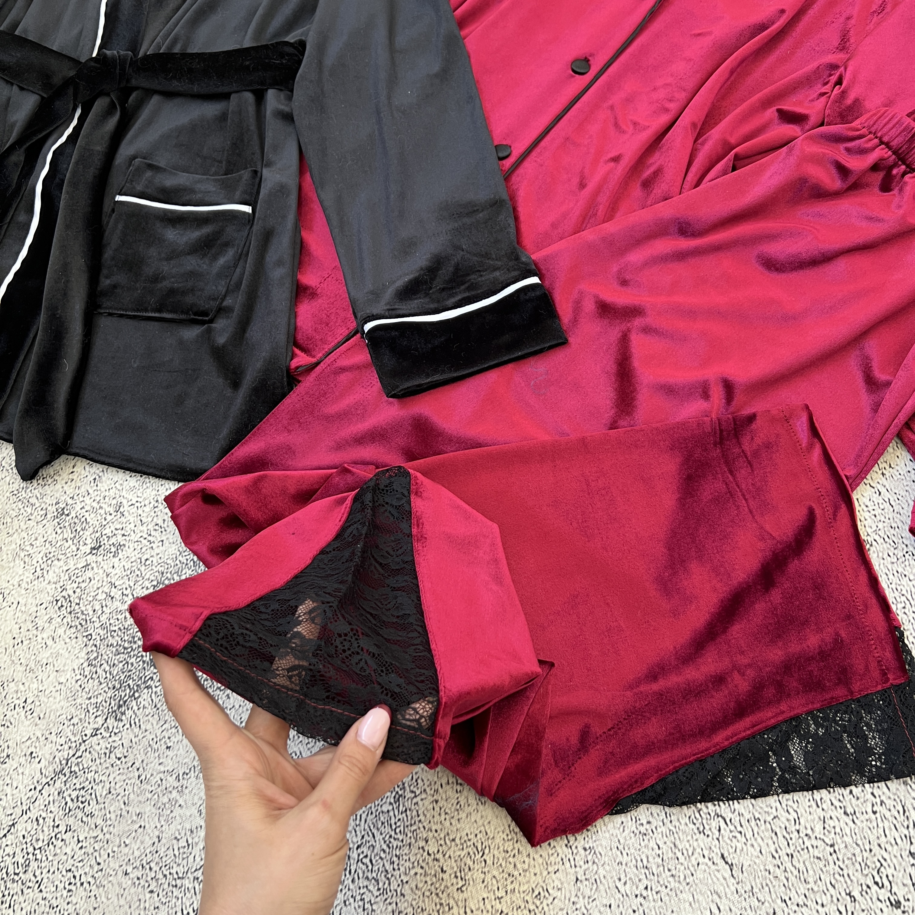 مشخصات اصلی رنگبندی کت و پیژامه مخمل قرمز دانتل زنانهربدوشامبر و شلوار مخمل مشکی مردانه سایزبندی زنانه XS(34) زنانهS(36) زنانهM(38) زنانهL(40) زنانهXL(42) زنانهXXL(44) زنانهXXXL(46) زنانه4XL(48) زنانهS مردانهM مردانهL مردانهXl مردانهXxl مردانهمشخصات فرعیجنس پارچهمخمل