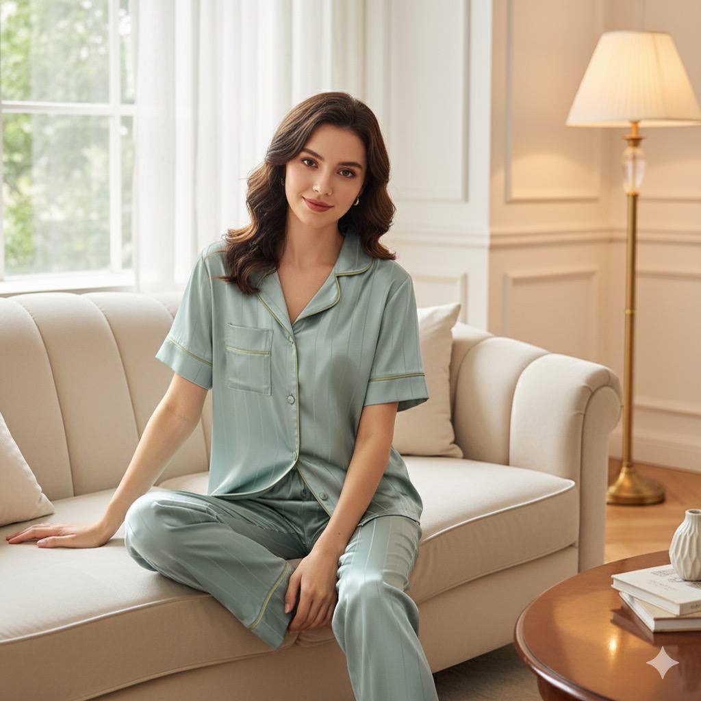 مشخصات اصلی رنگبندی سبز ماچاسرمه ای سایزبندی زنانه XS(34) زنانهS(36) زنانهM(38) زنانهL(40) زنانهXL(42) زنانهXXL(44) زنانهXXXL(46) زنانه4XL(48) زنانه شامل کت و پیژامهبلوز و شلوارکنیمتنهکت و پیژامه و شلوارک ( ۳ تیکه )مشخصات فرعیجنس پارچهساتن ابریشمی