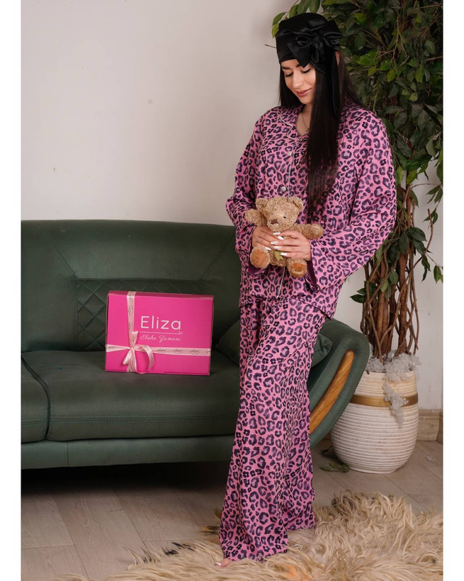 کت و پیژامه پلنگی صورتی نخ پنبه