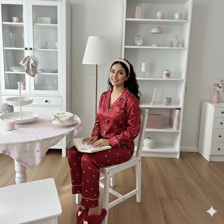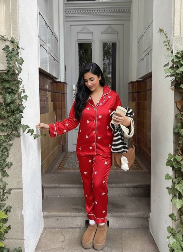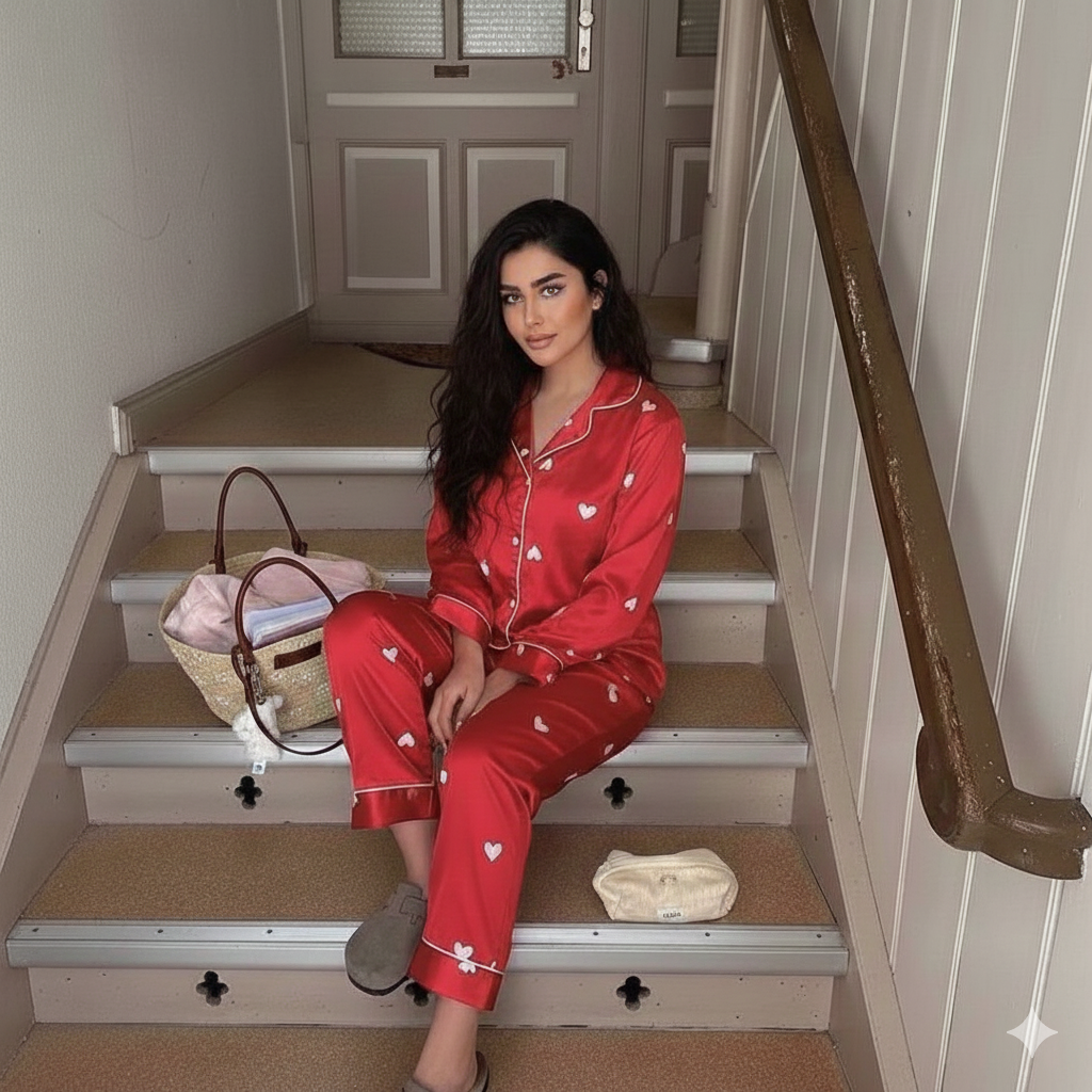 بلوز آستین کوتاه و شلوار قلبی درشت