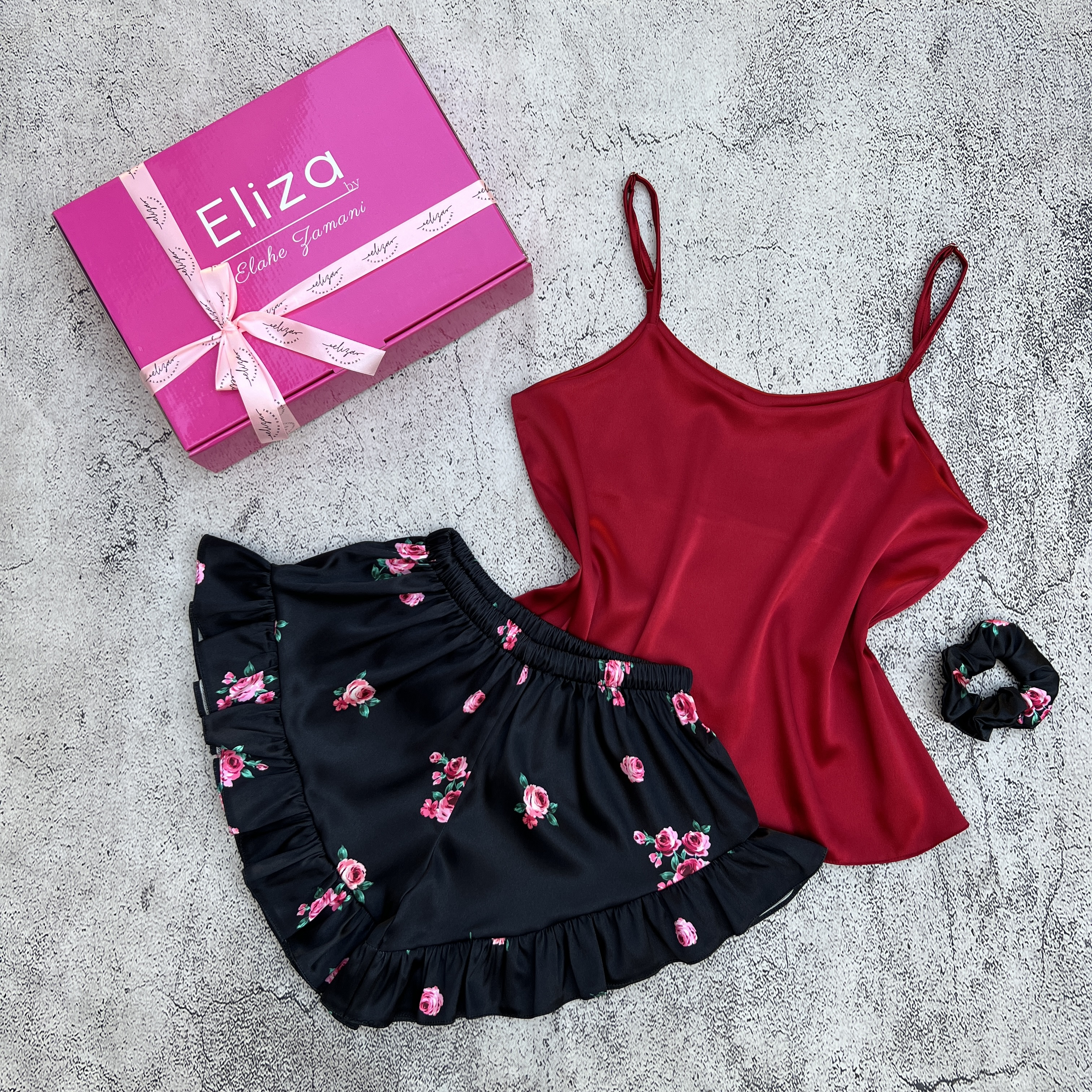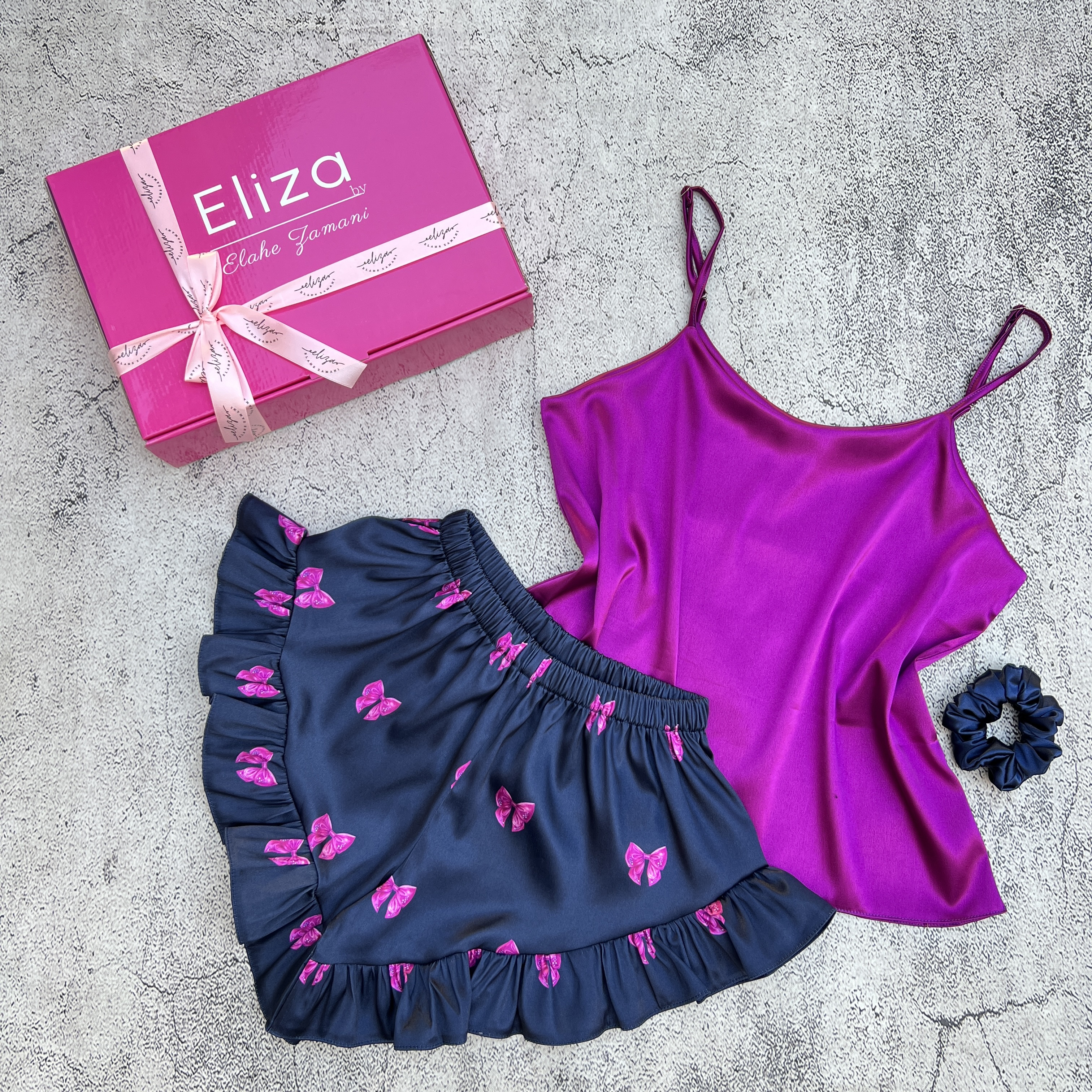 تاپ بندی سرمه ای با شلوارک دیور آبی