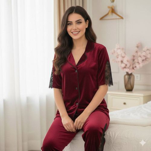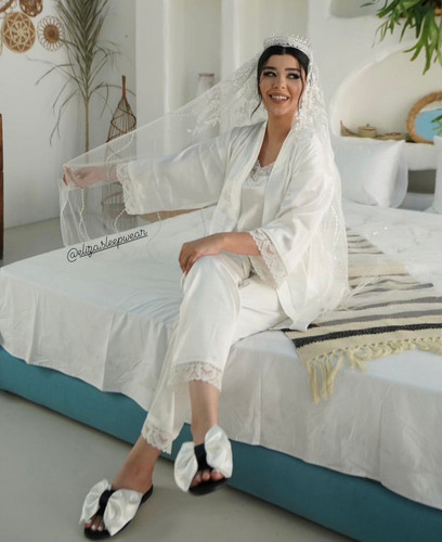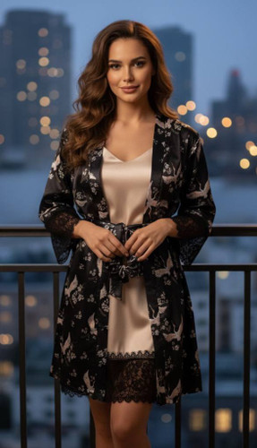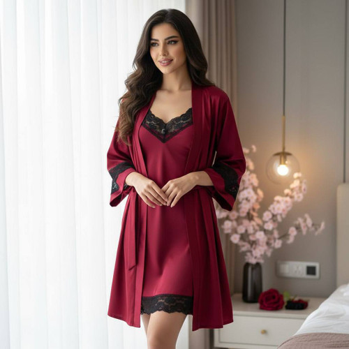 ست ربدوشامبر و پیراهن دانتل فرانسوی