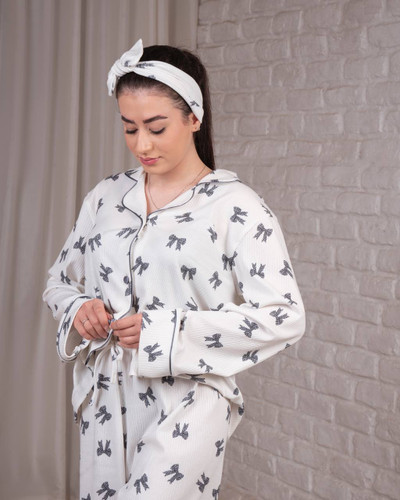 بلوز و شلوارک طرح پاپیون سفید نخ پنبه