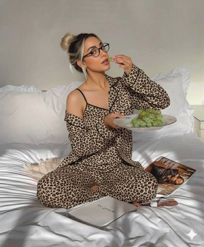 کت و پیژامه پلنگی قهوه ای نخ پنبه