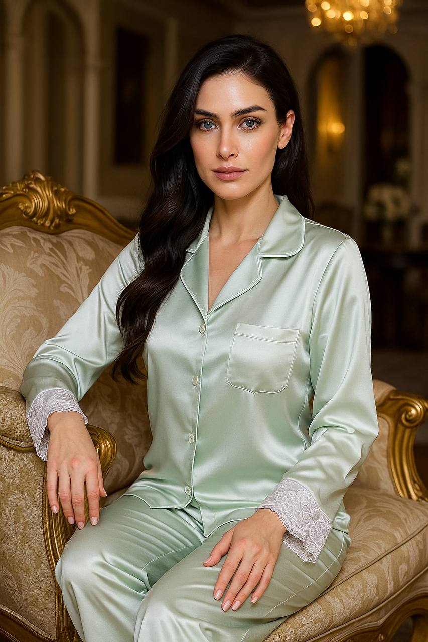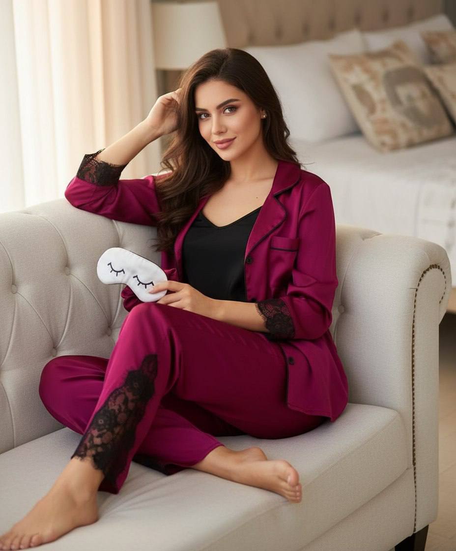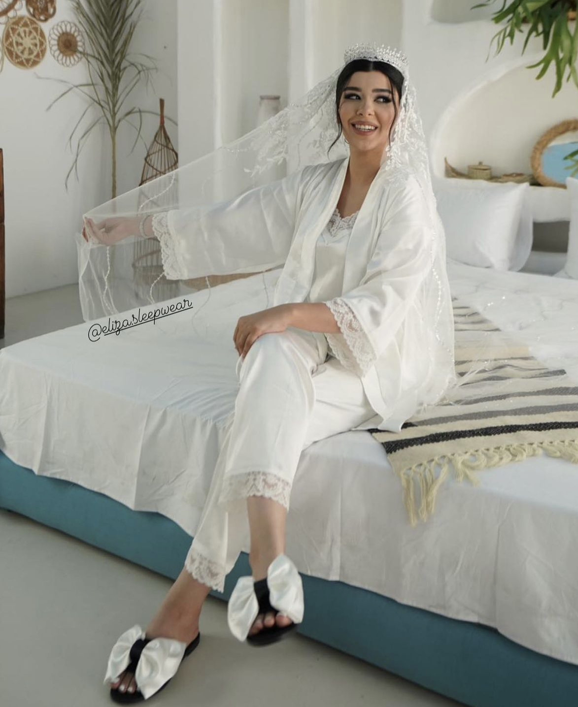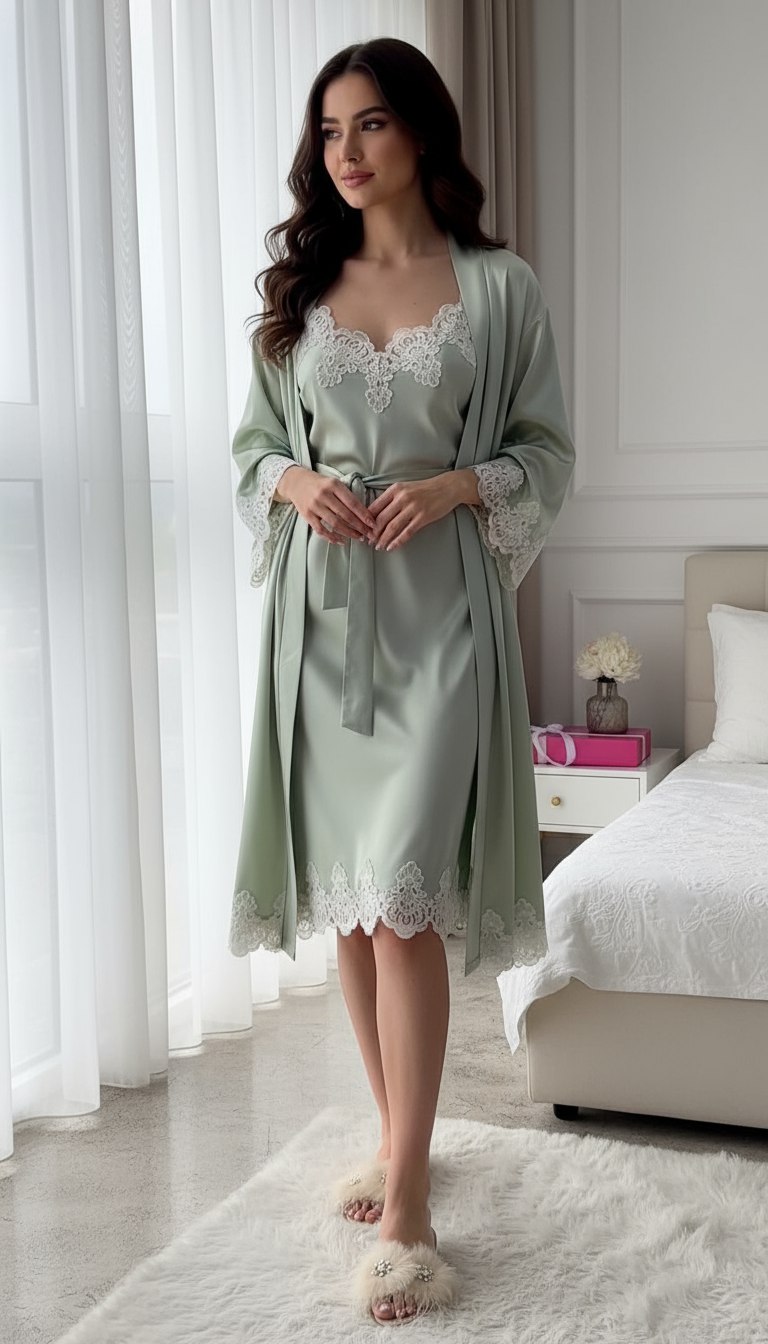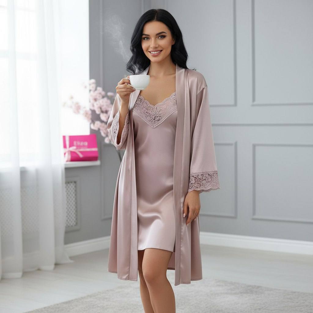 ست ربدوشامبر و پیراهن دانتل فرانسوی